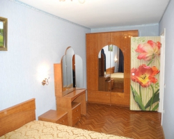 В квартире есть: холодильник, стиральная машина, кондиционер, телевизор, СВЧ печь, DVD, двуспальная кровать, двуспальный диван, утюг, фен, электрическая плита, чайник.