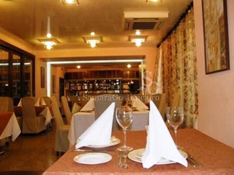 В комплексе есть небольшой ресторан изысканой европейской кухни на 45 посадочных мест, откуда можно также заказать завтрак в номер. Кроме того, в ресторане можно проводить конференции, банкеты и фуршеты.
